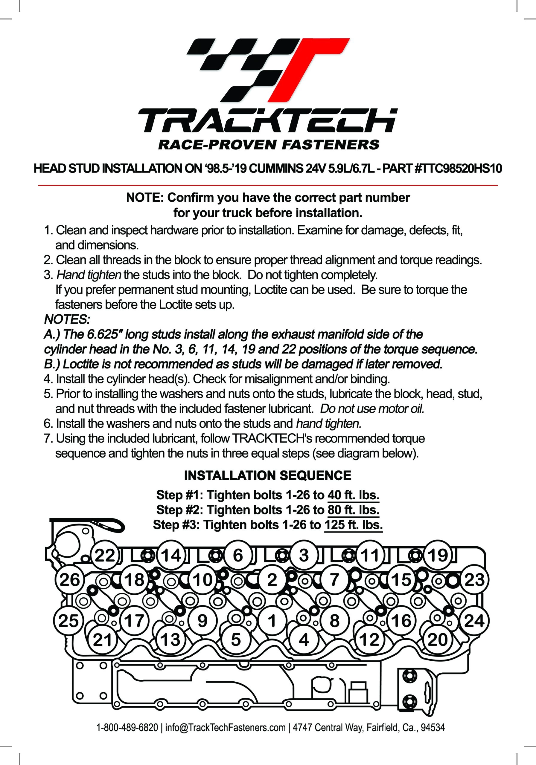 • (6) Cylinder Head Studs (Longer Exhaust side location outside of the valve cover)
